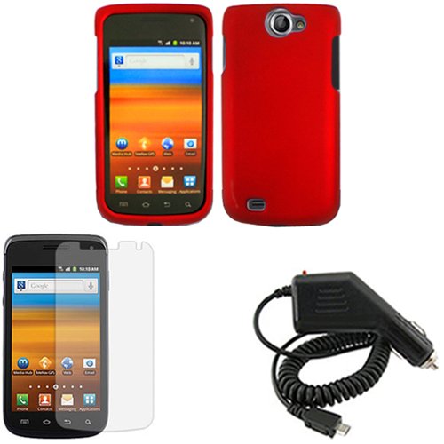 Christmas Sales iFase Brand Samsung T679/Exhibit II 4G Combo Rubber Red Protective Case Faceplate Cover + LCD Screen Protector + Rapid Car Charger for Samsung T679/Exhibit II 4G Overview